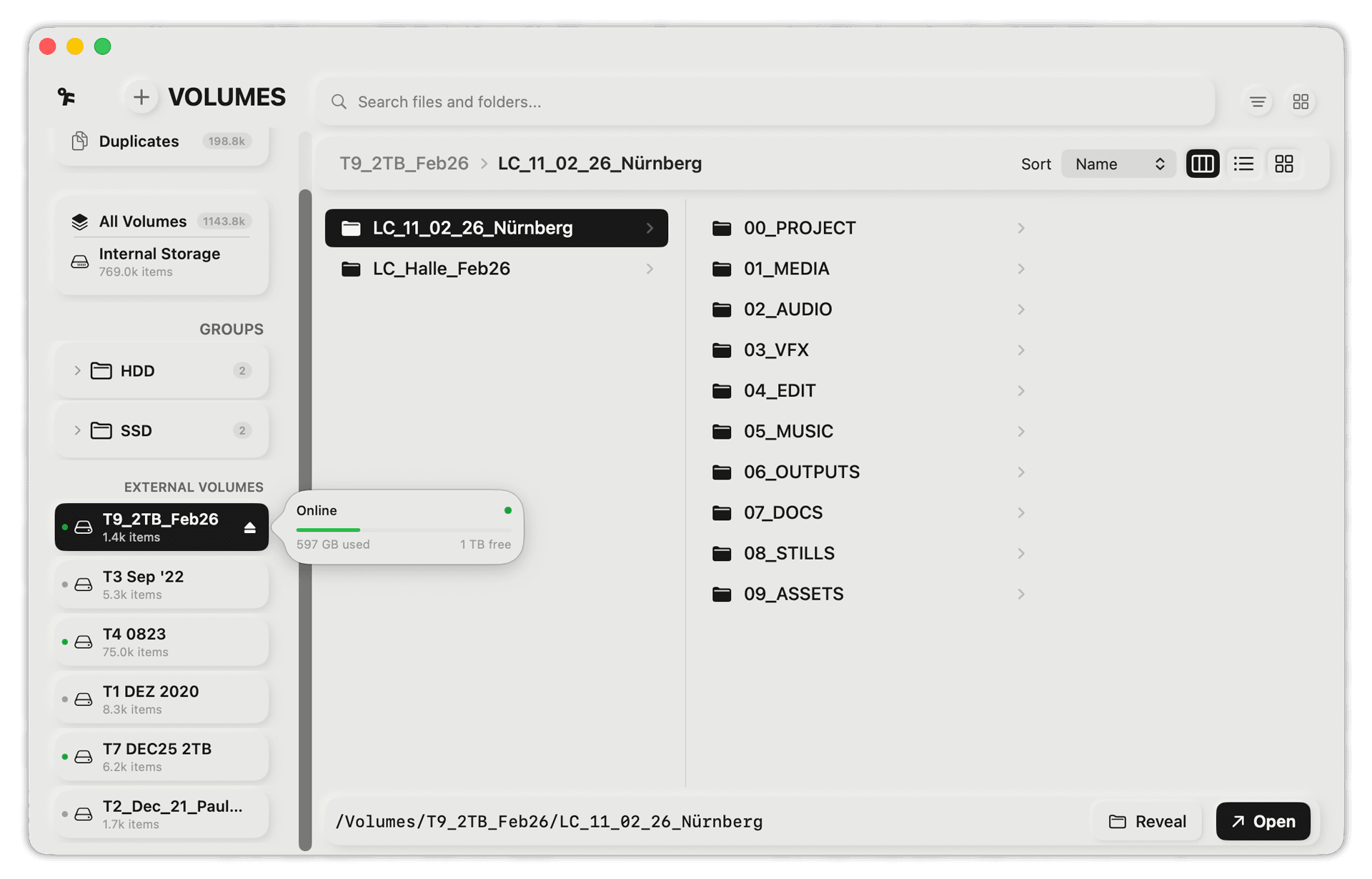 Built for photographers, editors, filmmakers, and anyone else whose projects live across too many hard drives. No more guessing which drive has the file you need. Search first, plug in second.