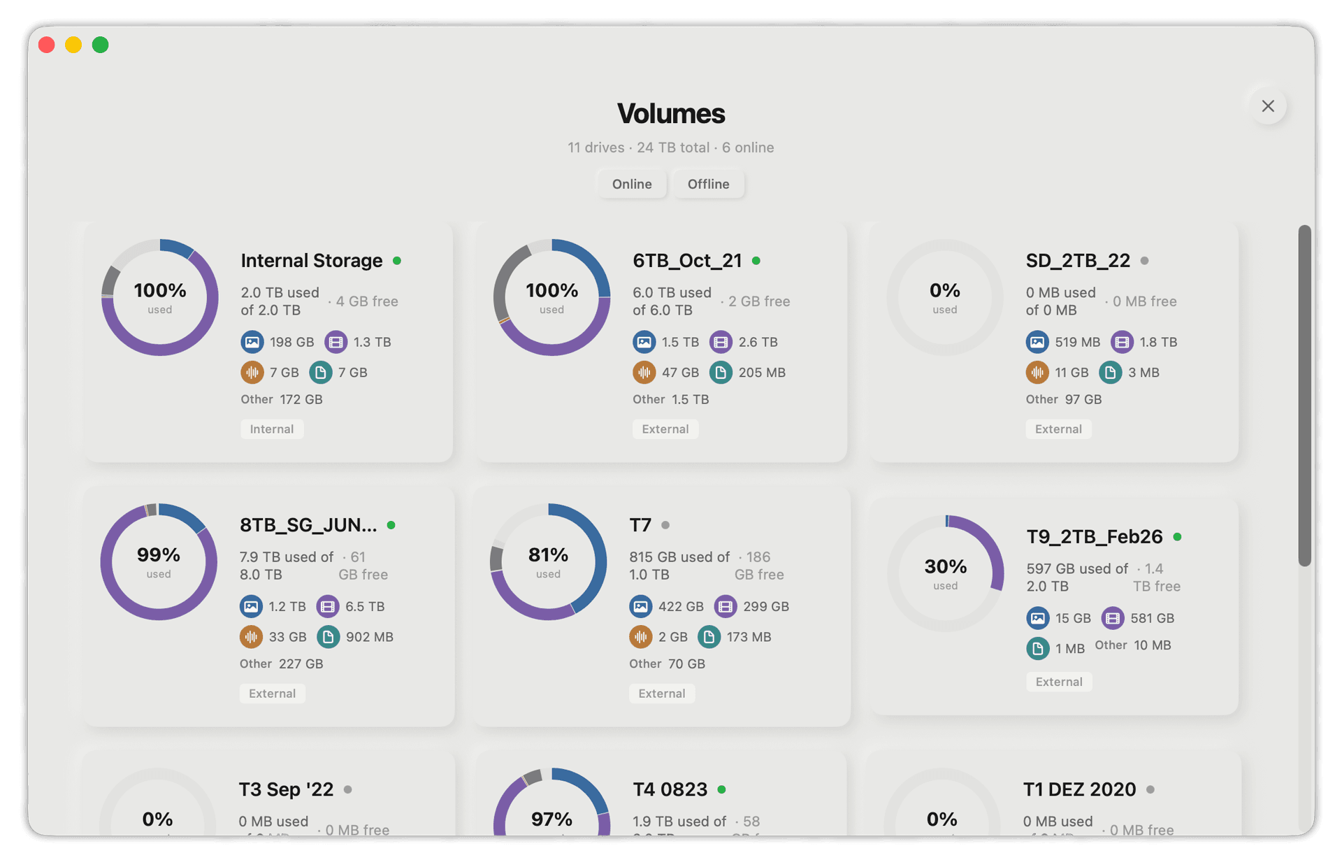 Offline Files is a macOS app for anyone who works with multiple external drives. It indexes your volumes locally and makes every file searchable, even when the drive is disconnected.